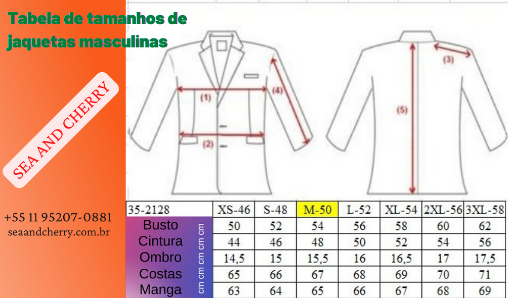 Dimensões do modelo: Altura: 186 Peso 80 Busto 102 Cm Cintura 82 Cm