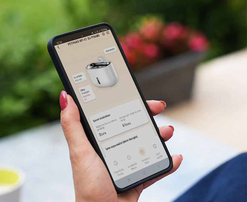 O aplicativo móvel oferece uma experiência de consumo personalizada para o seu pet. Você pode monitorar e controlar facilmente o fluxo de água, os horários de troca do filtro e o nível da água por meio do aplicativo móvel Fakir Home. Este recurso inovador é especialmente conveniente para pessoas com estilos de vida agitados.