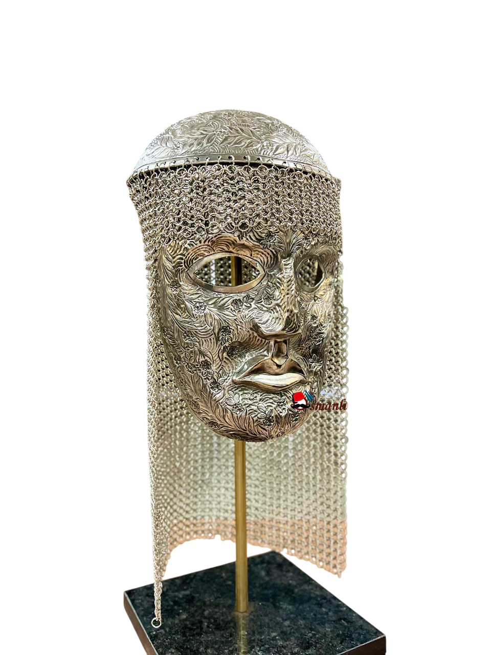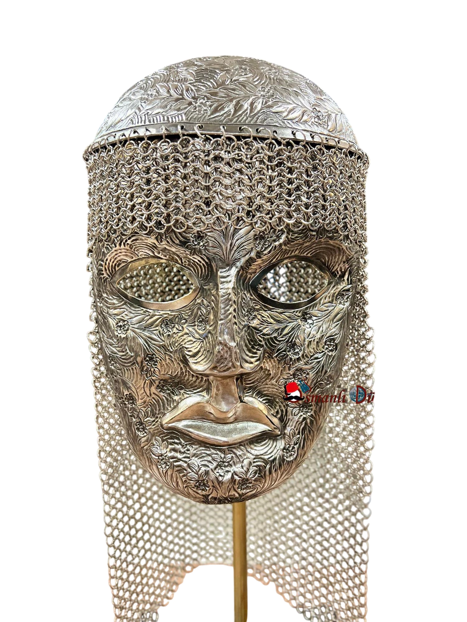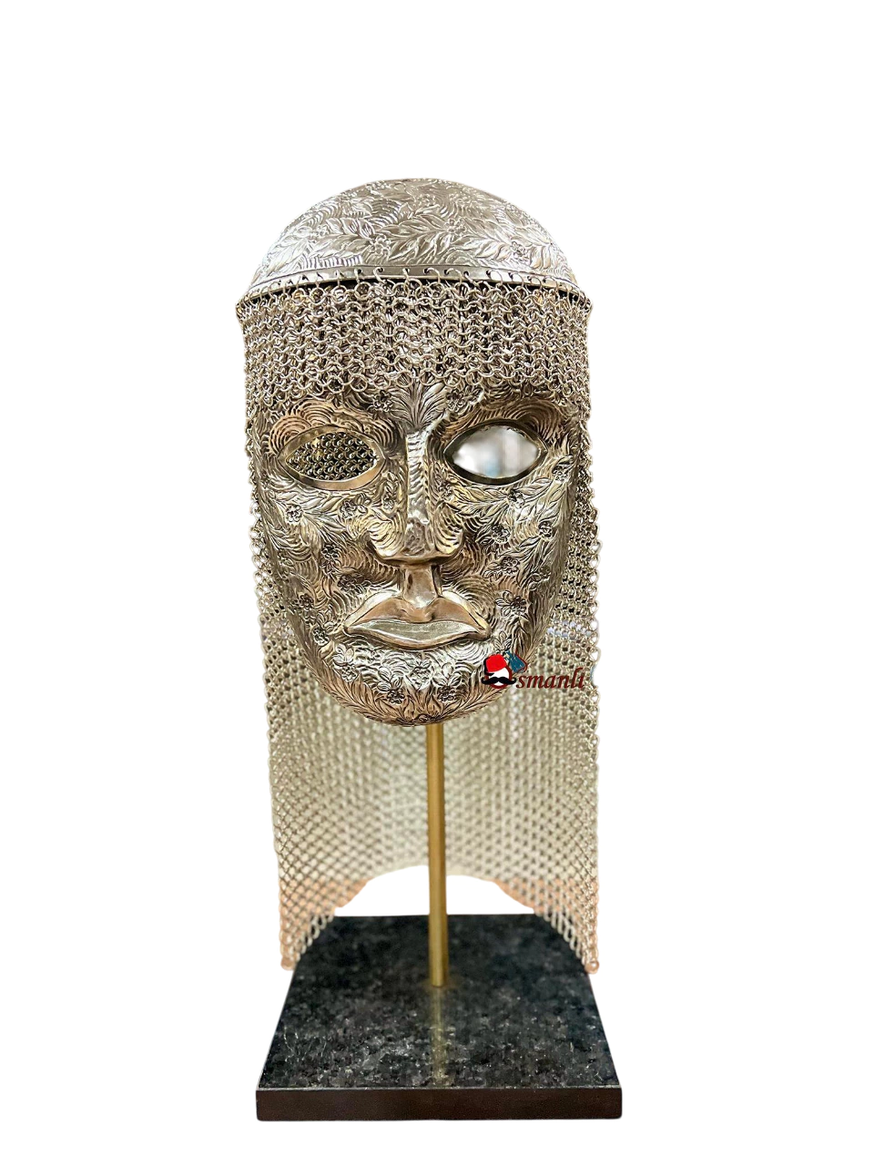 Design: The helmet has a masked structure. This mask not only protects his face but also presents a fearsome appearance to his enemies. The mask of the helmet is adorned with detailed, intricate craftsmanship.